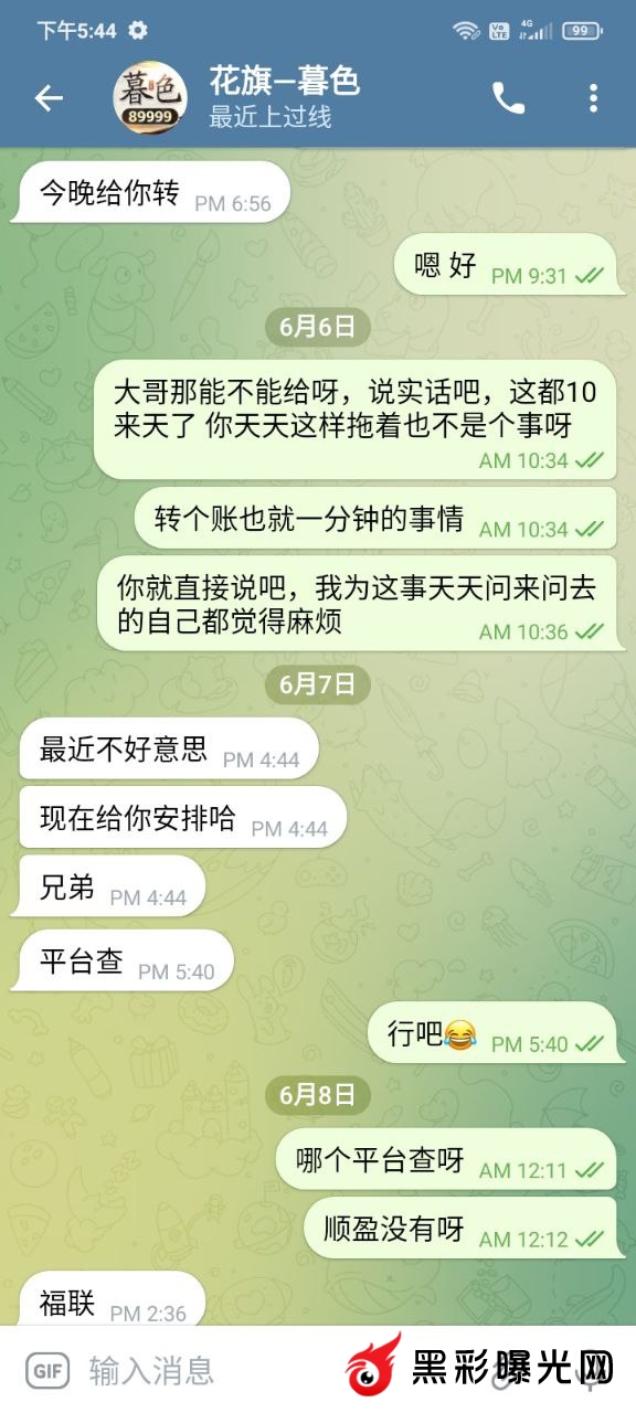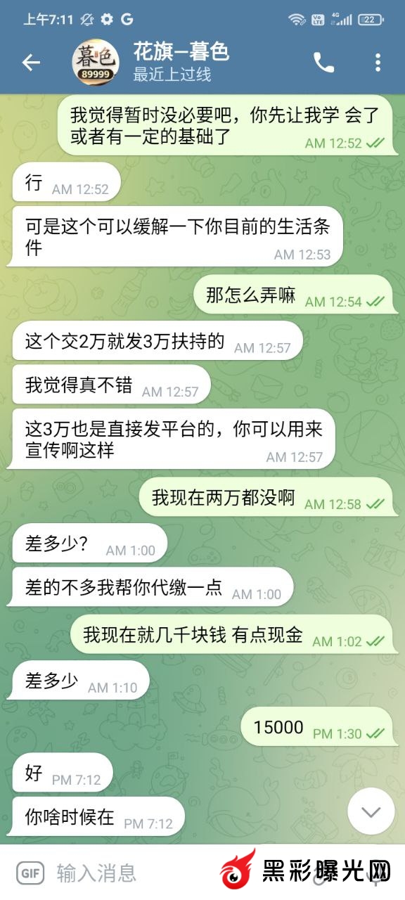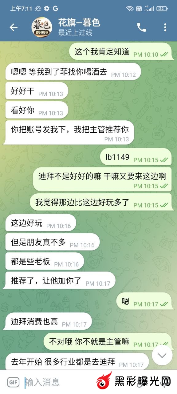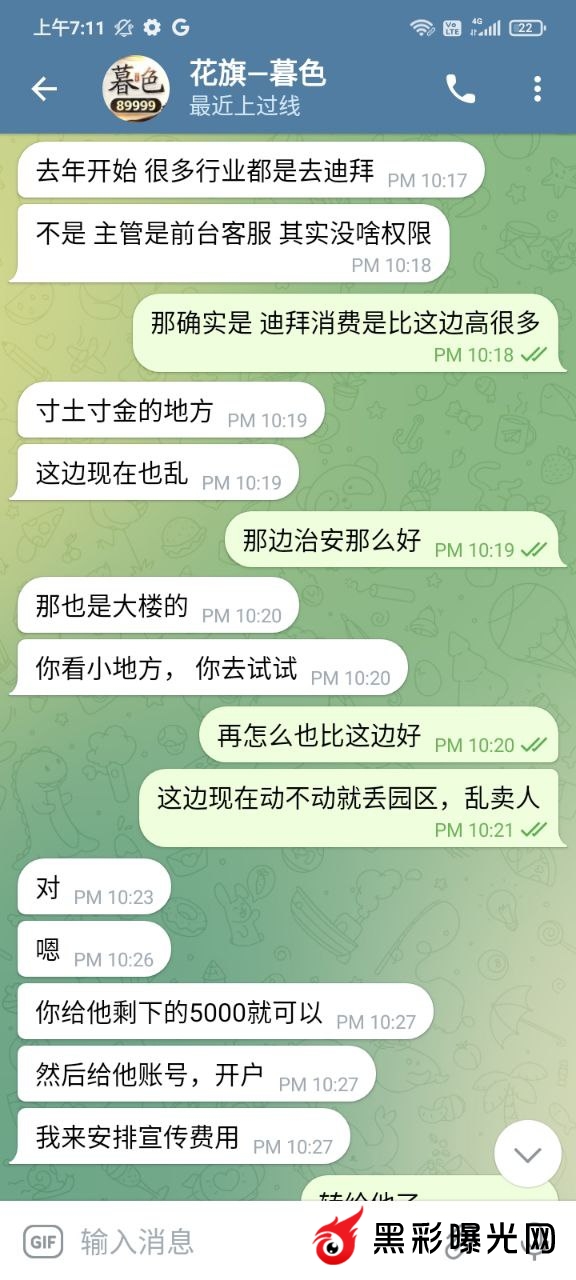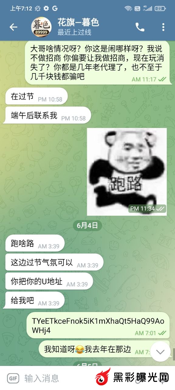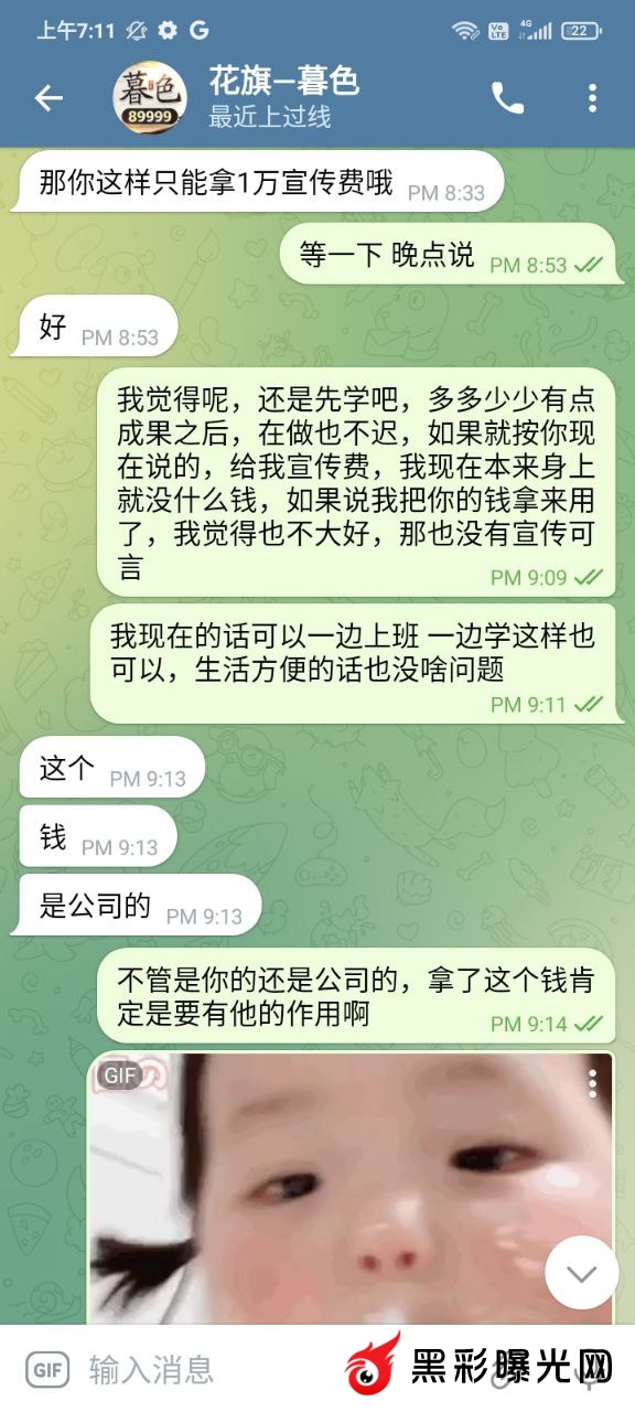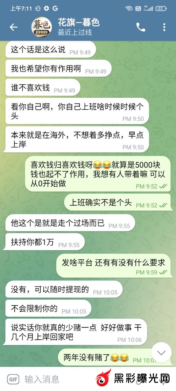 前几年在他下面玩,后来因为输多了就到了菲,一直也没有赌了,前段时间就去一品上面玩了一下,因为提款问题,我就和他聊了几句,后来他就叫我跟他做招商,我本来也没什么钱,因为每个月工资都要还账。他说他帮我,会带我扶持我。然后一直拖一直拖,到最后直接就是看了消息都不回了