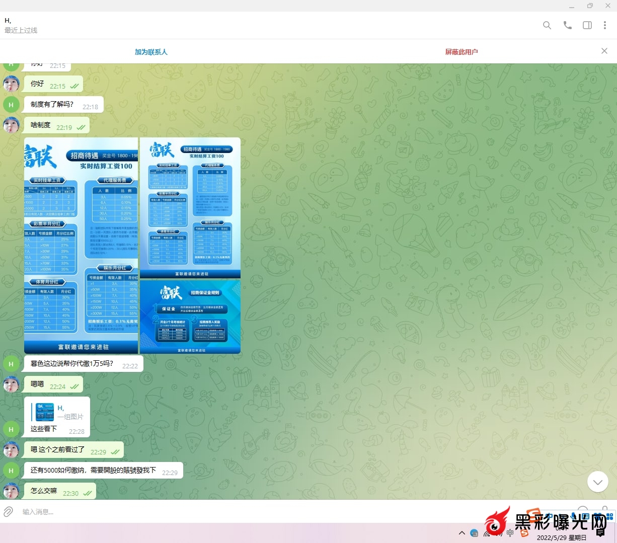 (那个H就是他给我推的所谓主管,当然我现在有点怀疑就是他另外一个号)