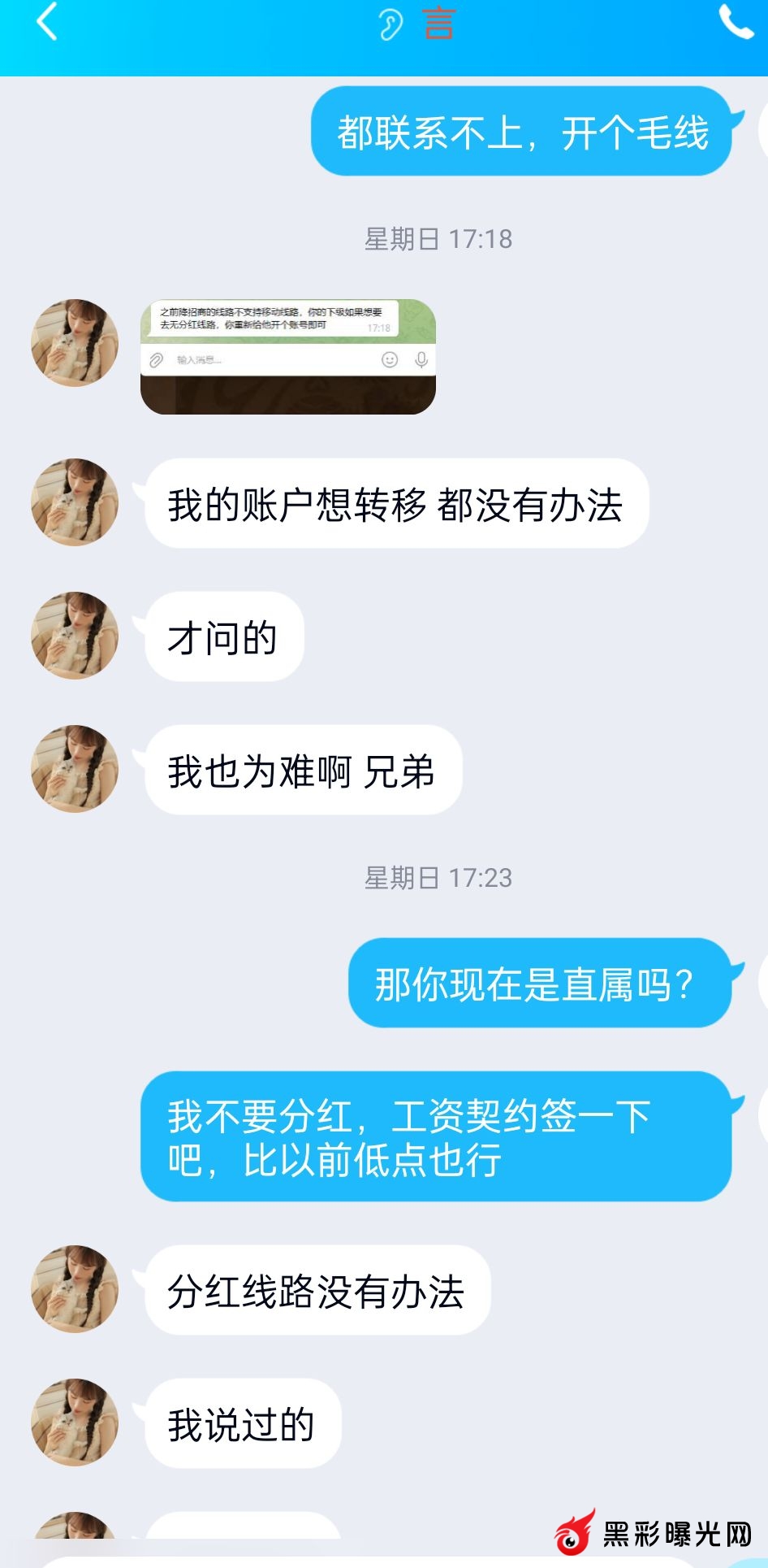 聊天图片是几个月前了,本人一直比较低调,宁愿吃点亏,所以一直没发。但是此黑代理太无良,未免大家继续吃亏上当,现发之,希望有在他下面的人尽快转移,行业末期,黑代理肯定是捞最后一波了,有此人详细身份信息的可在评论区留言