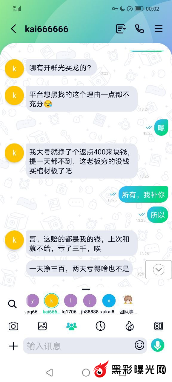 现在曝光下这个黑平台和黑代理的节操,无耻无德无节操,黑平台也要有黑的样子,从来没见过这样的垃圾,团队总共余额15000左右 ,团队总盈利5000多元。总共4 个不同地区的玩家,2 个玩奇趣分分的,2 个玩龙虎的。倾城黑平台全部把会员余额扣除。账号冻结,连人家提现的500都不出款,还有玩家充值的3000 ,什么都没玩过,也冻结。只能亏损,不能盈利。无其他理由, 直接冻结,上图开眼。