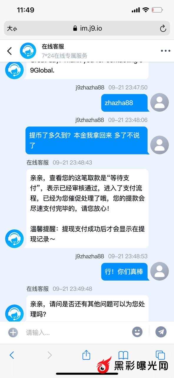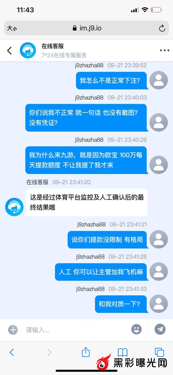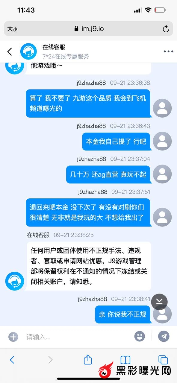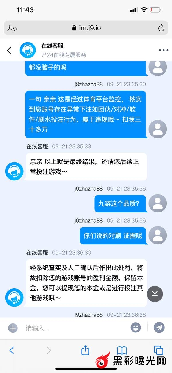 我在九游充值45000U 30万人民币整,首充玩的体育第一场打的30000U日本联赛 +0.25 14000 +0 结果平中了一半,账户里有5w多币了。第二场打的 越南Vs新加坡,越南上半场17000币-0.25 中了,随后追加越南全场-0.75 2万币。也中了,帐户90000多U。提款一直不到账,找九游客服 客服说我对刷 拜托 九游的管理都这么没脑子是吗?我首充30万人民币 说我是刷子 违规操作。客服一句违规操作 扣除盈利 只给本金 九游是赢了不行,输了才行这个意思吗?玩不起干嘛要开体育厅?30万首充你说我刷子?客服一句违规操作扣除5万U盈利,只给本金。真的是没格局 听朋友说九游很大的平台才过去 现在看来呵呵了。被黑玩家本人飞机 @zhazhaxuan