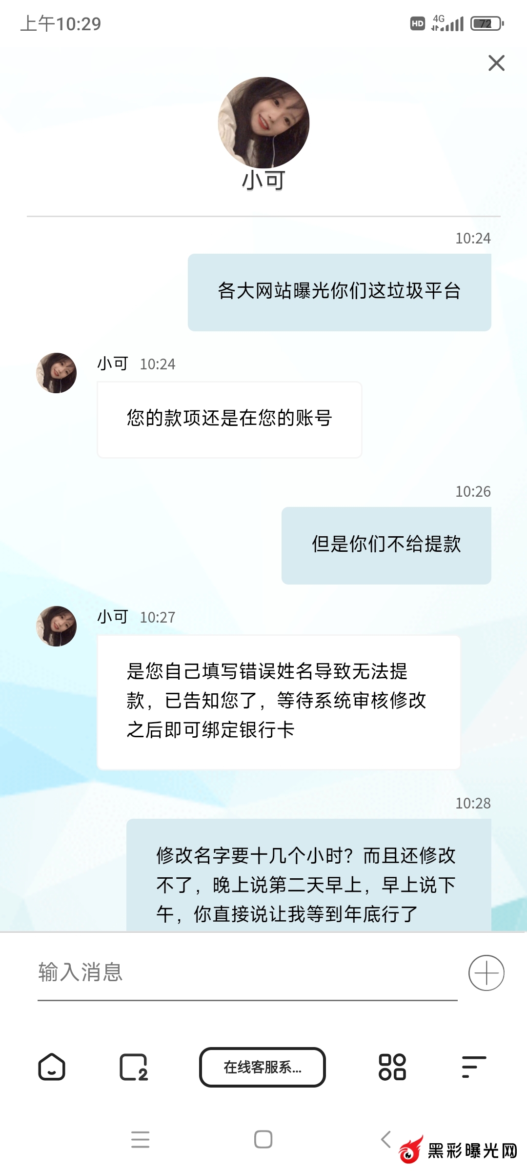 www.1860.com新葡京,是一个几百块钱都黑平台,在里面赢钱了找各种理由拒绝提款,提款绑定银行卡的时候说银行卡名字和账号名字不对,可明明注册看清楚了是对的,然后提交申请修改名字,晚上说第二天早上处理好,第二天早上不行又说下午,到下午又说第二天再来,修改个名字几天修改不了,说系统审核需要时间,各种理由不给提款,几百块钱而已