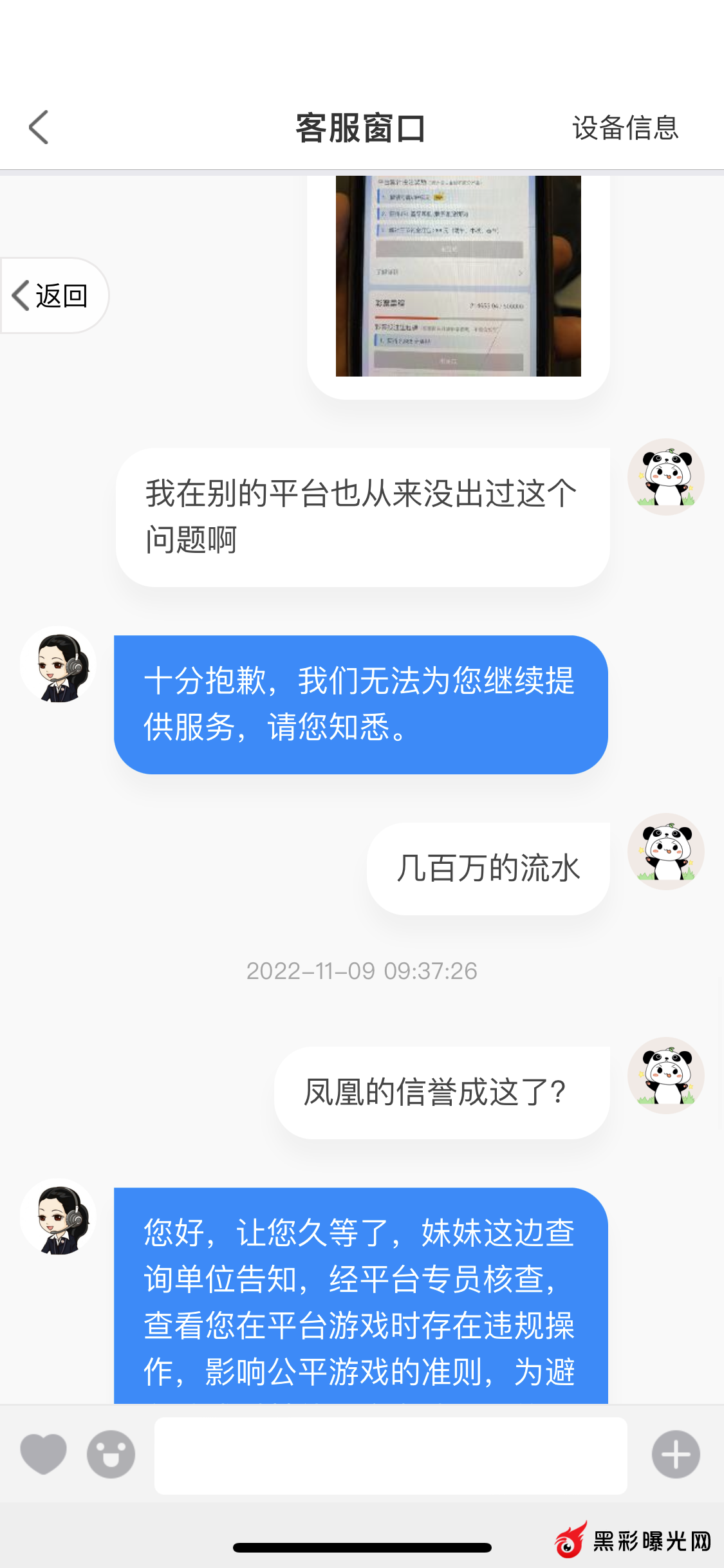 垃圾FH至尊平台,中奖之后接提现,当时凌晨1点左右,问客服说是审核,问了好几次,又说是下班了,结果就睡了,第二天早上接着提现,突然直接APP就掉线了,登录不上,联系客服说是违规套利,我QNMLGB,五星直选,又没个活动,套NMB,真特么黑,凤凰已经不是以前那个凤凰了,奉劝各位擦亮眼睛