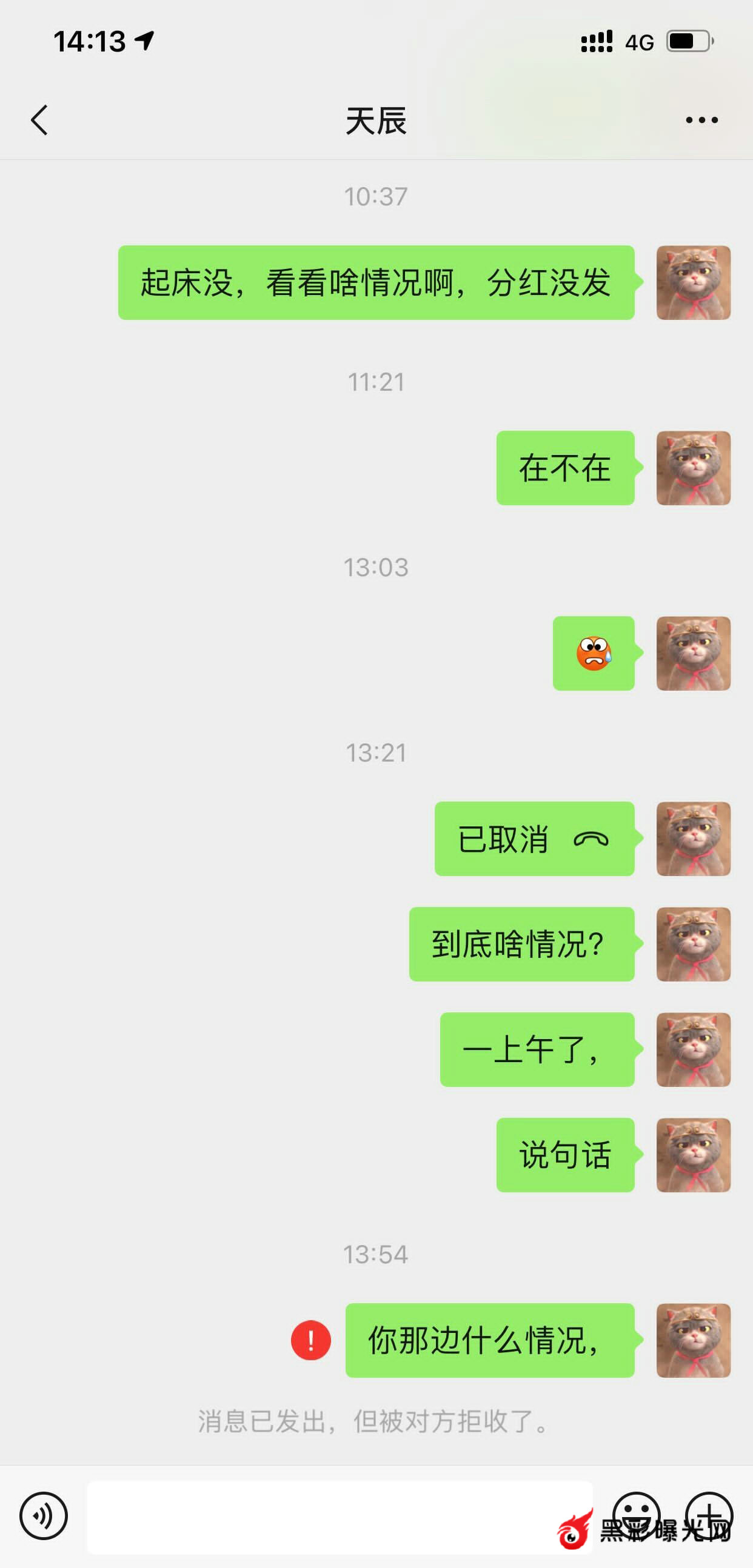 经过:以前两三万的分红都是正常发的,这次周期电子亏损100余万,按照正常来说,今天应该发分红的,结果到现在都没有发,联系上级,上级不予回复,多次联系后备直接拉黑。