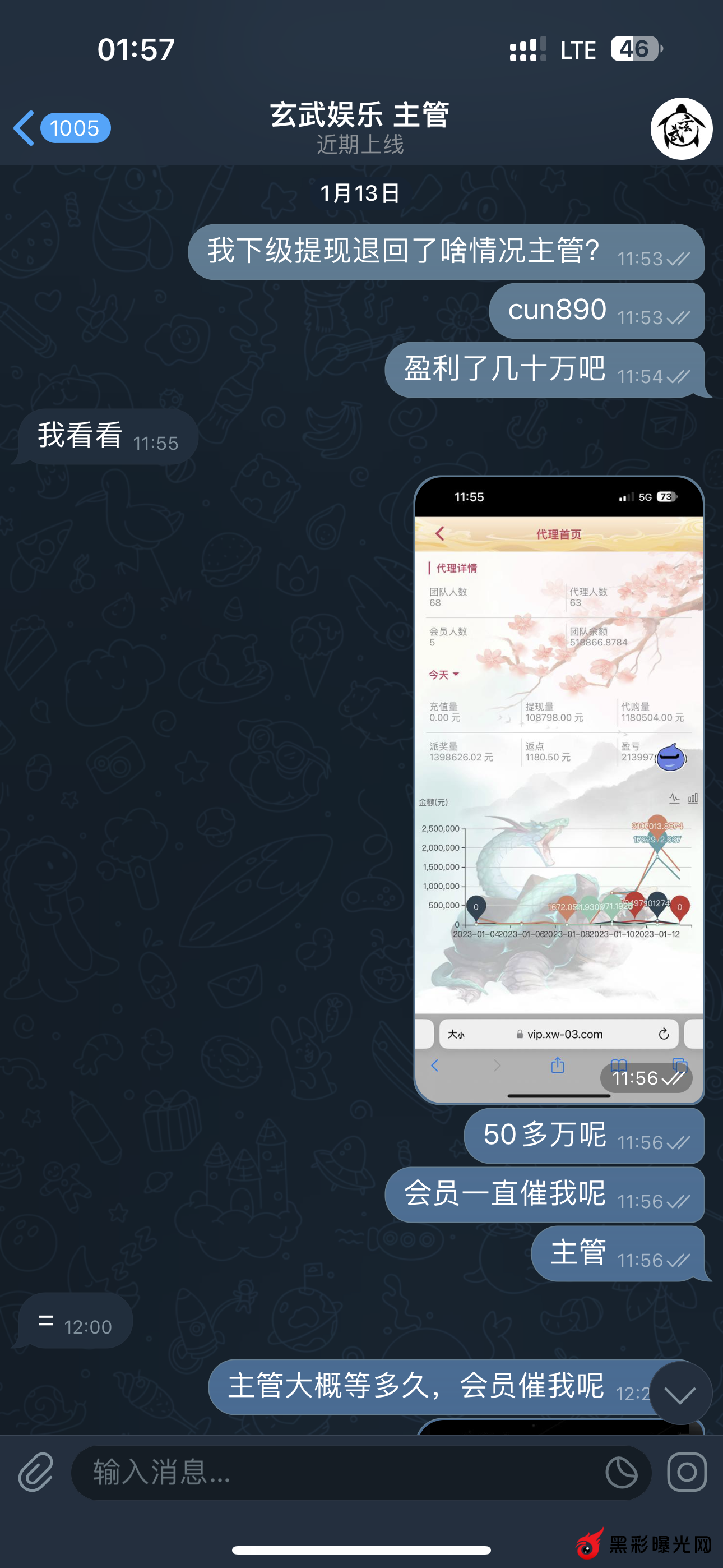 一些玄武主管聊天记录,我就一直等第二天也就是14号的时候我的账号就被冻结了50万