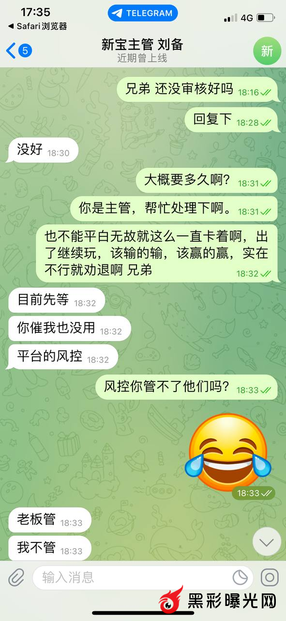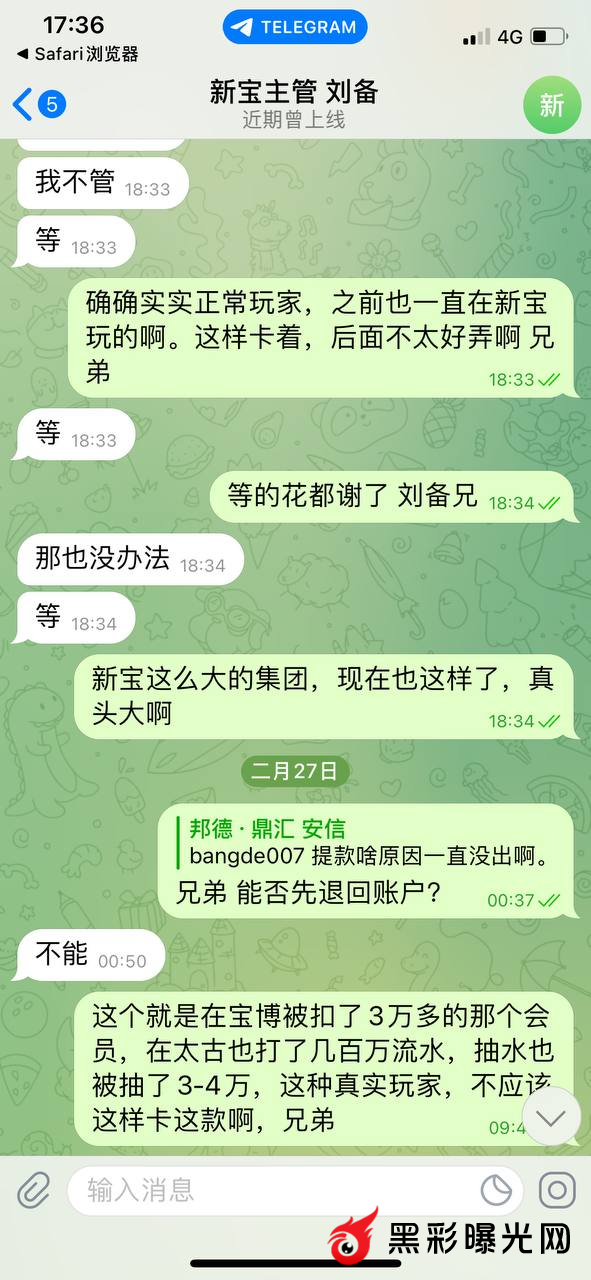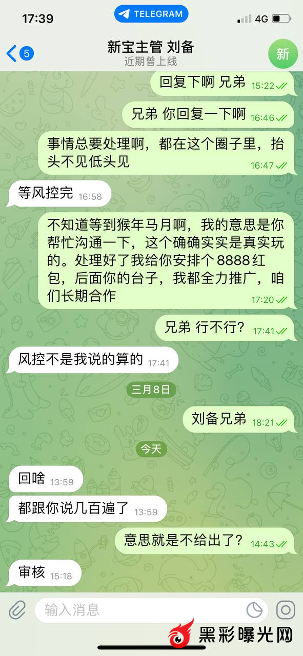 太古娱乐卡款5.5万,10余天一直不出,主管专线始终已在审核为由不出款。会员玩的河腾分分彩,每天打几百万流水,太古一万流水抽水120,如此吸血,还黑会员钱。穷途末路,丧尽天良! 太古主管刘备@XBYL8 新宝主管大司马@xb788