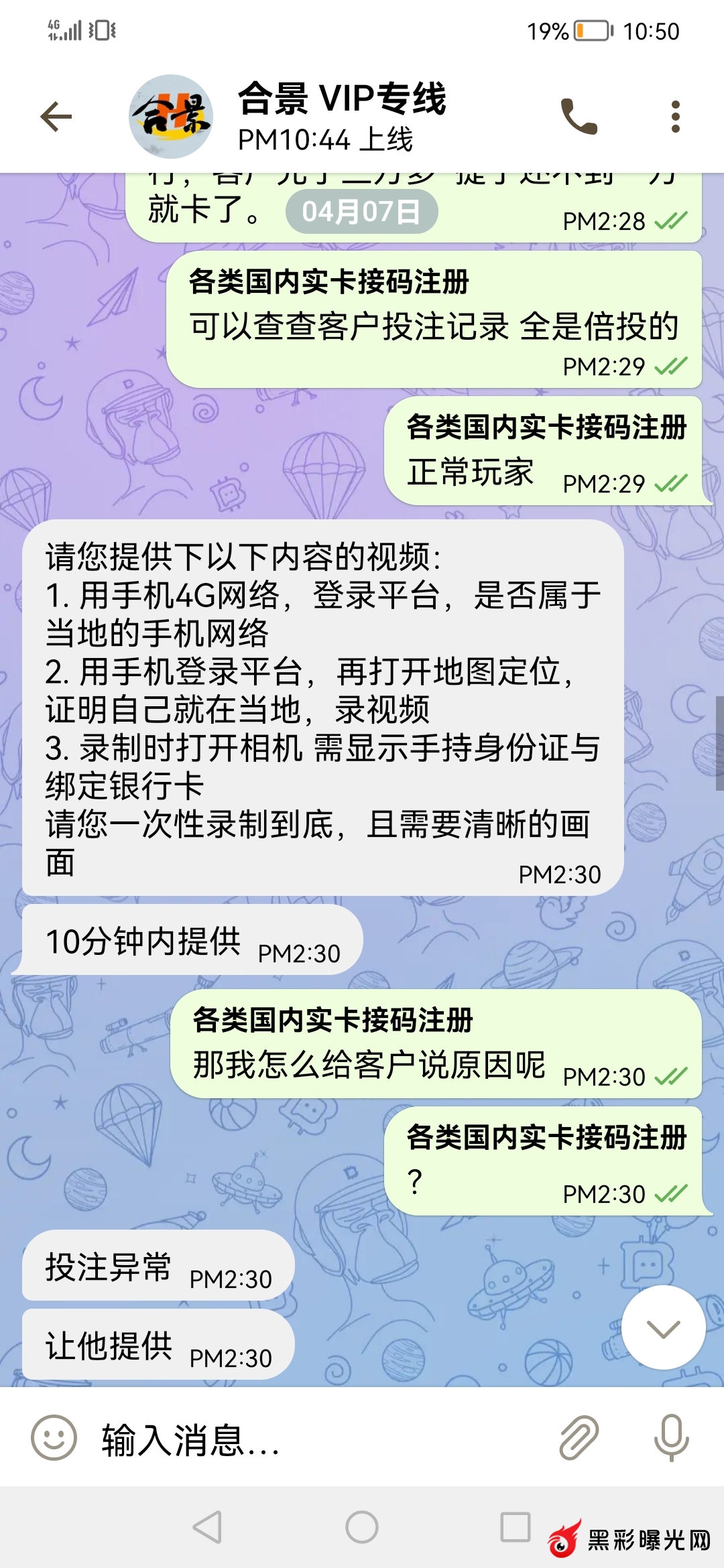 合景平台 打的新奇趣,正常的五码倍投,照着众赢打的 说我对刷。 还要我十分钟内提供 手持身份证银行卡视频,还让我开手机网络 打开地图定位 在当地录视频,说十分钟提供不了直接冻结。 我2023-4-03 晚七点多充值两笔 一笔25000 一笔 6983 三天 打新奇趣 五码倍投 盈利27951 四月七号晚 提9935 未到账 被客服要求 ,还让我联系市场管理,但市场管理上线不看消息 不回复。我所有的和专线聊天记录和 投注记录 充提记录 都在下方,