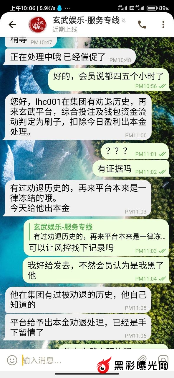 各位代理眼睛擦亮抓紧时间撤离,玄武娱乐开业后四处发公告求着玩家代理去玩,就是为了以后黑钱做准备,而且下级会员一直在玄武娱乐上没赢过,前前后后输了十来万,5.6号充了8000盈利3w多,提款被平台卡款不出,就开始说各种理由不出款,开始说是劝退户,又开始说刷子,,又说会员中奖后加倍去投注了,摆明了《玄武娱乐》是黑台子,现在又开了金麟,本人以次来让大家避坑,玄武娱乐也有好多人反应到处盈利不出款,实际就是为了坑蒙拐骗,割韭菜平台,行业代理人人知晓,而玄武就是来黑钱的,大家擦亮眼睛不要被垃圾平台《玄武娱乐》嬴钱就黑,只能冲不能提,靠着打着中立台的口号,去收割代理跟玩家,会员一直输的赢了就不给出,会员急了给我打电话,发消息,让我给他赔钱,然而玄武平台主管@Xwvip_zhuguan以代理替会员说话为由,冻结了整个线路团队,不给处理,也不给解冻