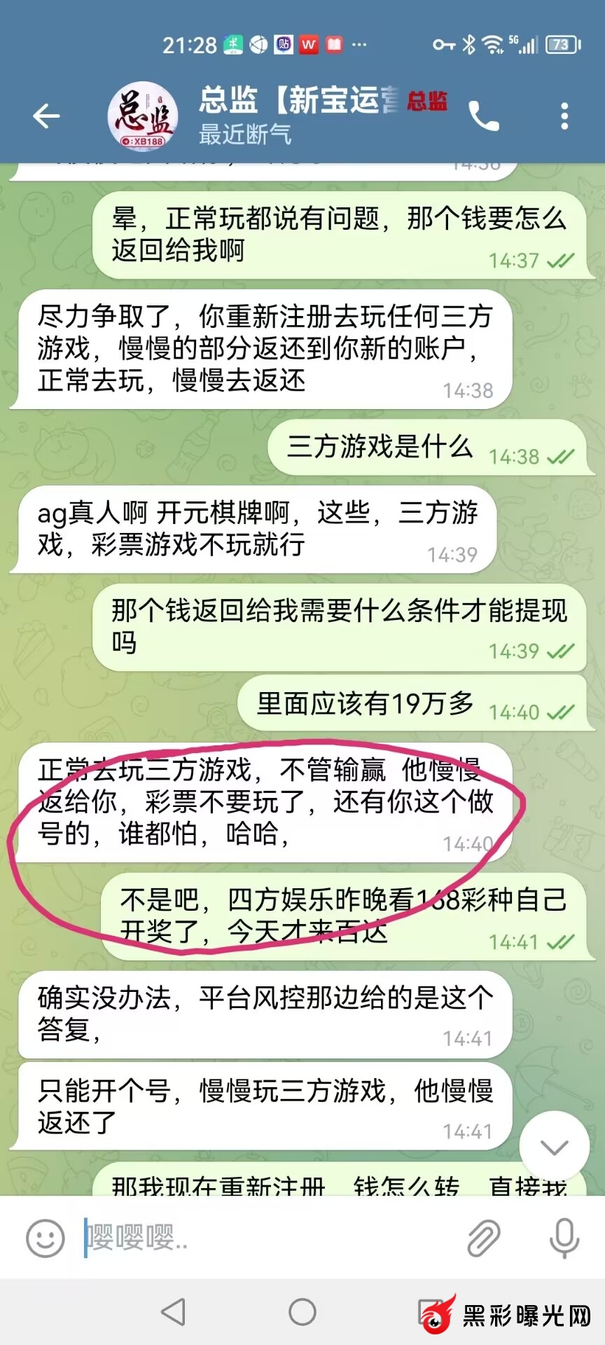 新宝百达我是5.13号找新宝总监开户的,因为以前玩过新宝的百事和星座,前前后后自己也玩输了200多万,期间有一天提现过100万的也都能正常出款,而且找的是新宝总监开户,本以为会靠谱,没想到竟遇到了黑台子!