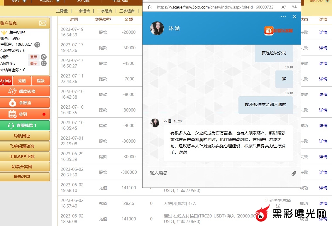 垃圾9960彩娱乐 总体下来充值28w 盈利23 不给提款 引导用户输光换成佣金还不到本金的一半。