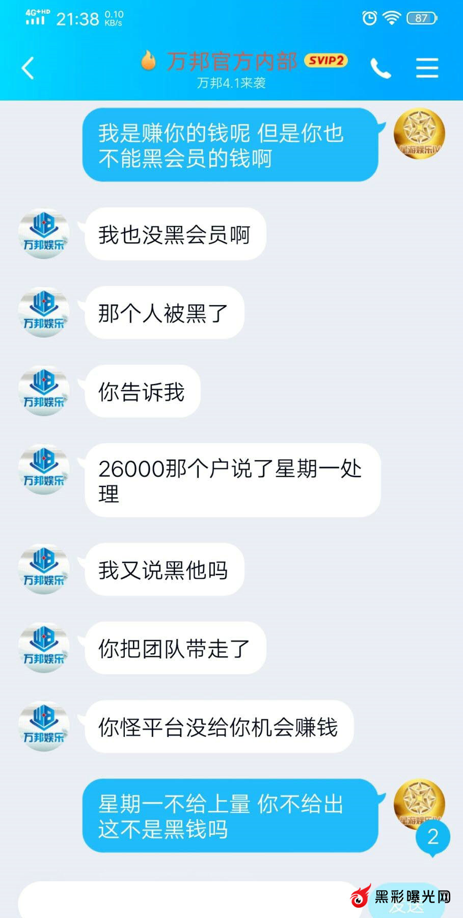 经过:会员取款26000,平台显示成功,实际上没有出款,其后联系上级,上级说需要继续上量从可以解决,不上量,这个钱就不会出。交涉无果后被上级删除好友。