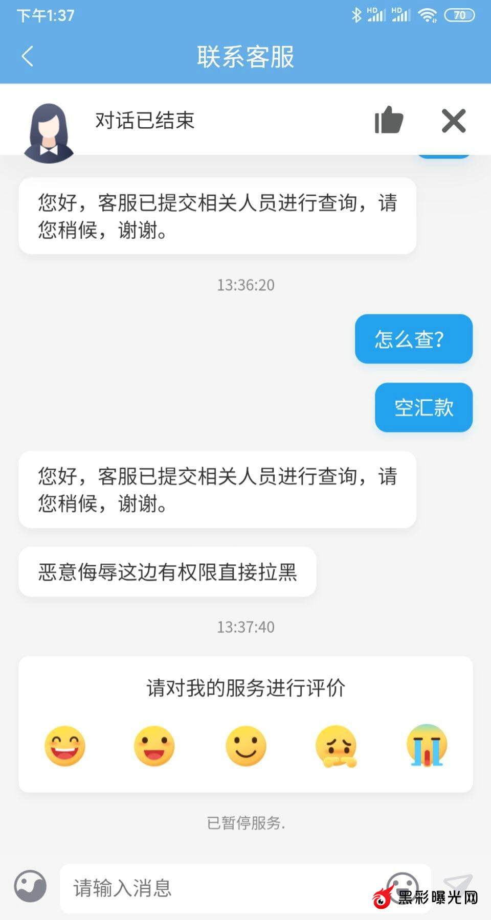 菲银提款空汇1万余元,客服暂停服务