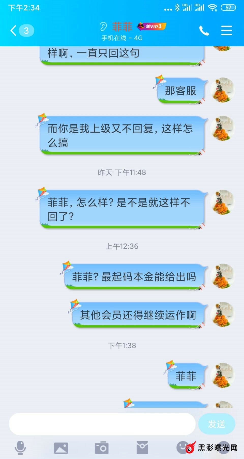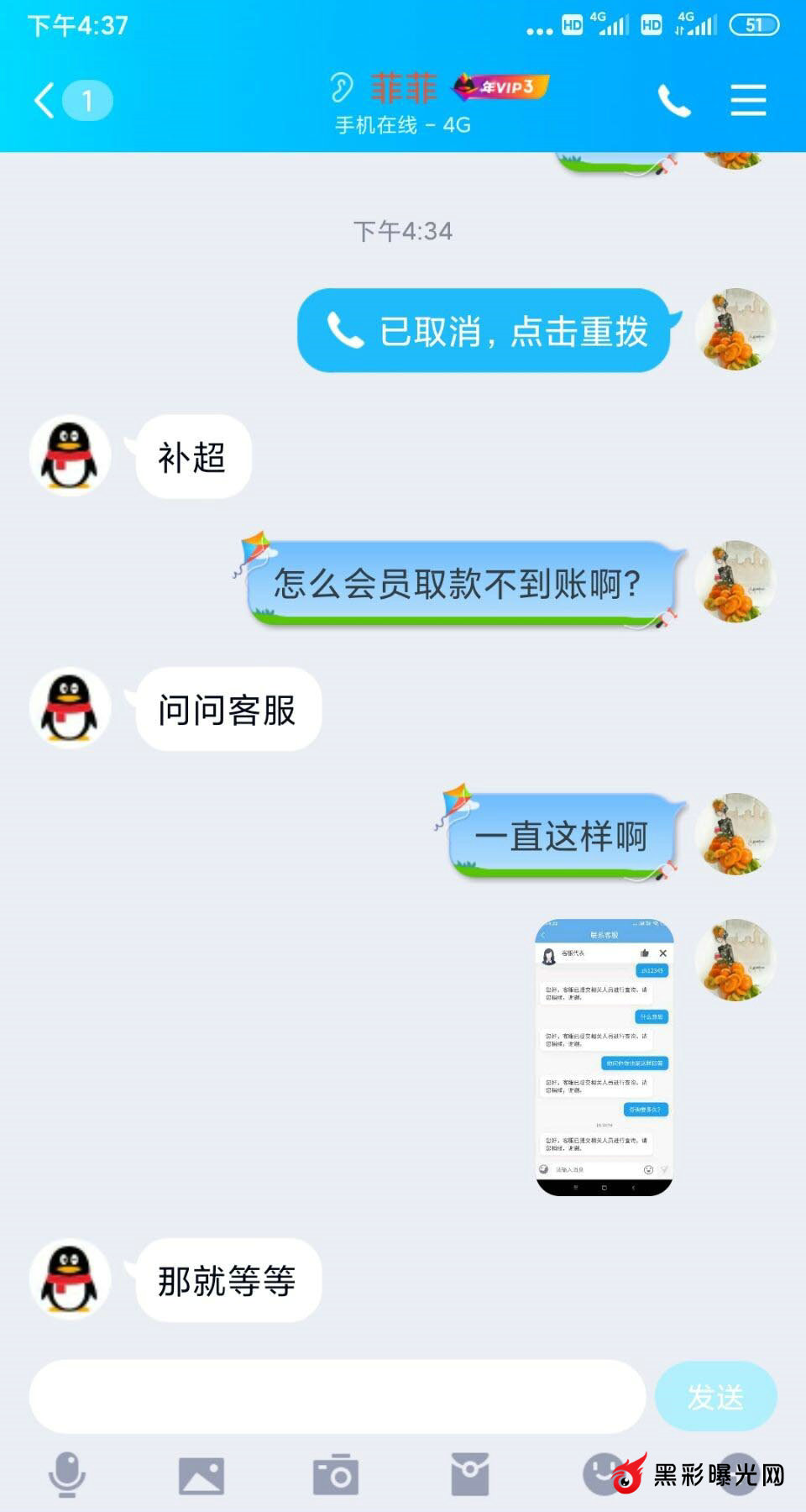 下图为与客服的聊天截图