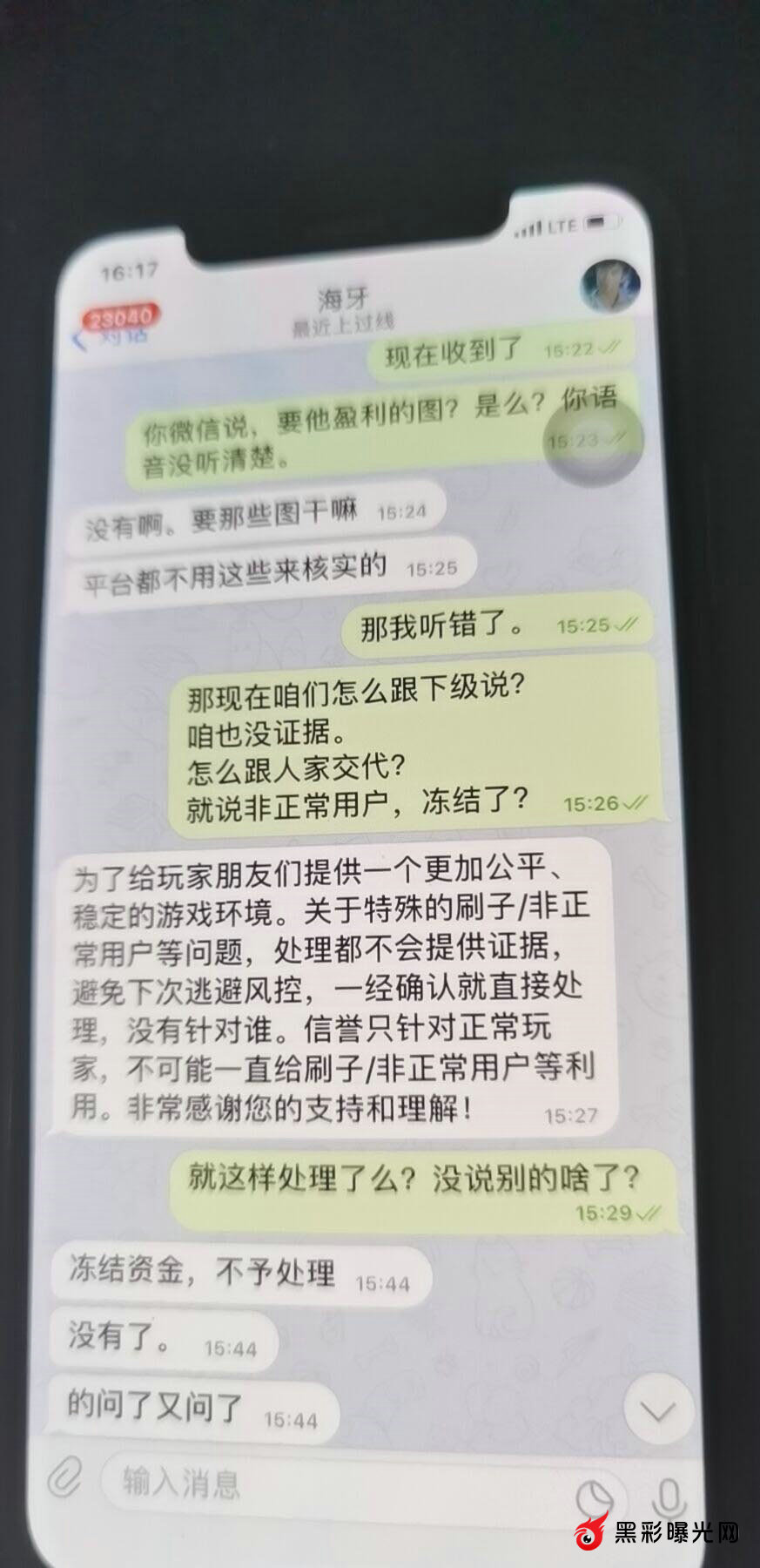 回复我上级代理的就是不管这个玩家 不给它出款 代理让招商和平台拿出证据证明我是非正常玩家 平台和招商也没有证据证明我是不正常玩家 我就是正常投注赢了 就不给我出款 从10号到今天17号 招商一直就不理人 态度就是不给我处理