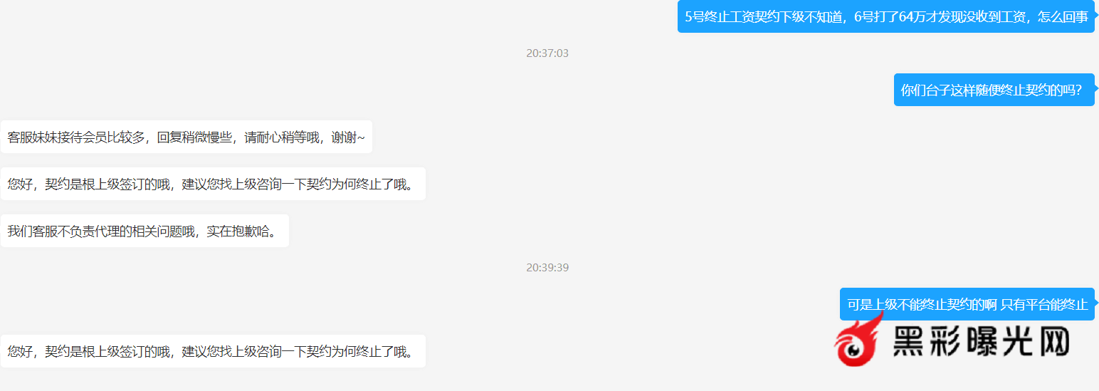 其后联系客服,上级表示不处理契约的事,要联系上级处理。