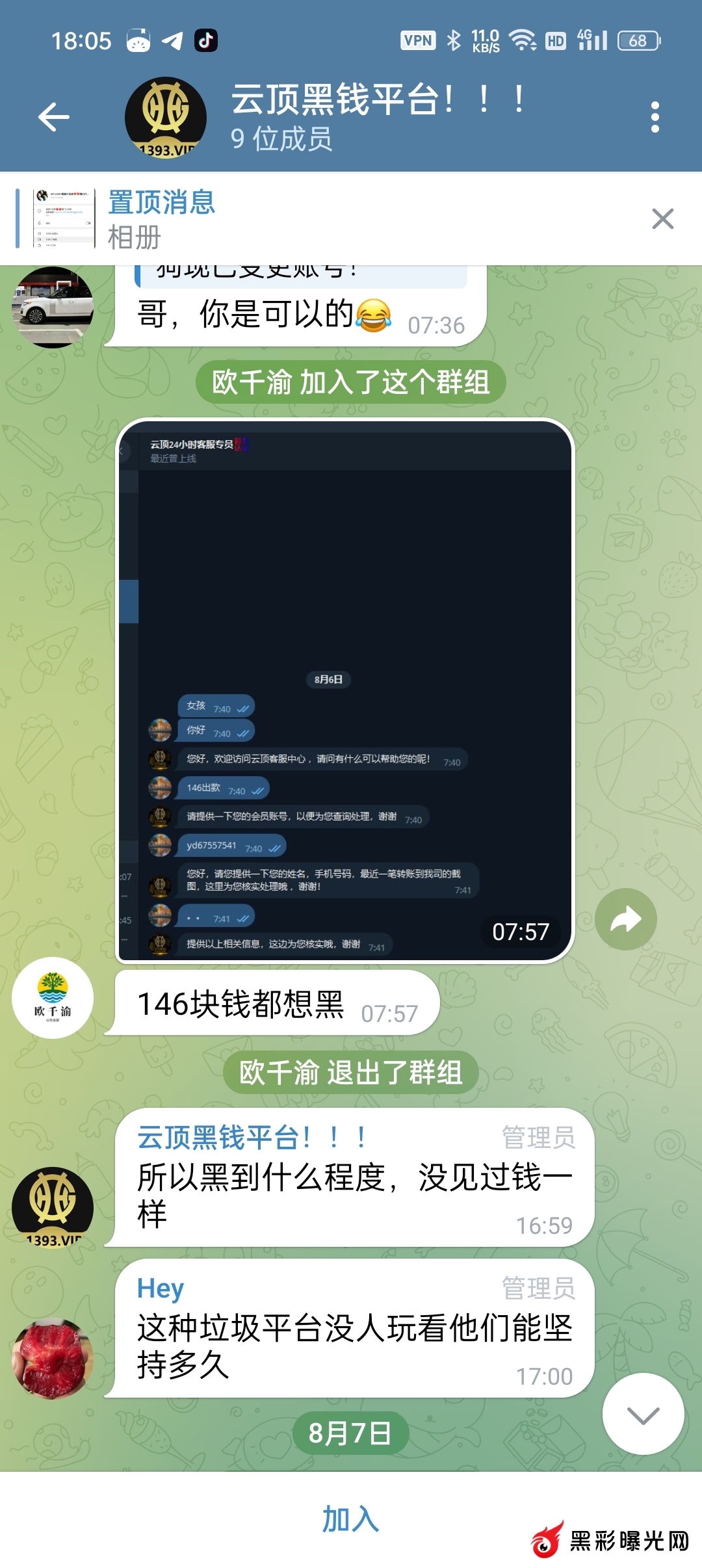 后来我通过搜索频道,发现在去年8月份就有人专门组建一个被云顶黑钱的群组。连一两百都黑,我现在发这个贴,自己都感觉脸上火辣辣的,丢脸丢脸啊!!!