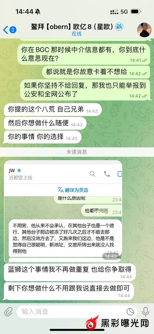 过程:我在5月26-27号在蓝狮充值27万,正常游戏盈利到了200万,期间提款50万一直审核,两天后账号被冻结,鳌拜给出的理由是我是奇亿的劝退人员,然而没有提供任何的证据,我问了市场群里以前赢了550万被奇亿劝退的那个人他说跟他一点关系没有,而且玩法也不一样。我和鳌拜沟通对我以置之不理,从始至终就是一句话说我是被劝退的,奇亿我连注册都没有注册过。鳌拜说黑就黑了,我不会放过鳌拜的,我会一直宣传和举报。我在汇旺还输了1300多万,在KK国际玩加拿大一天输赢也是百万,一个简单的会员也被黑。鳌拜和欧亿真的太没有人性了,我不会放过鳌拜的。更多证据:✈️@klk5588