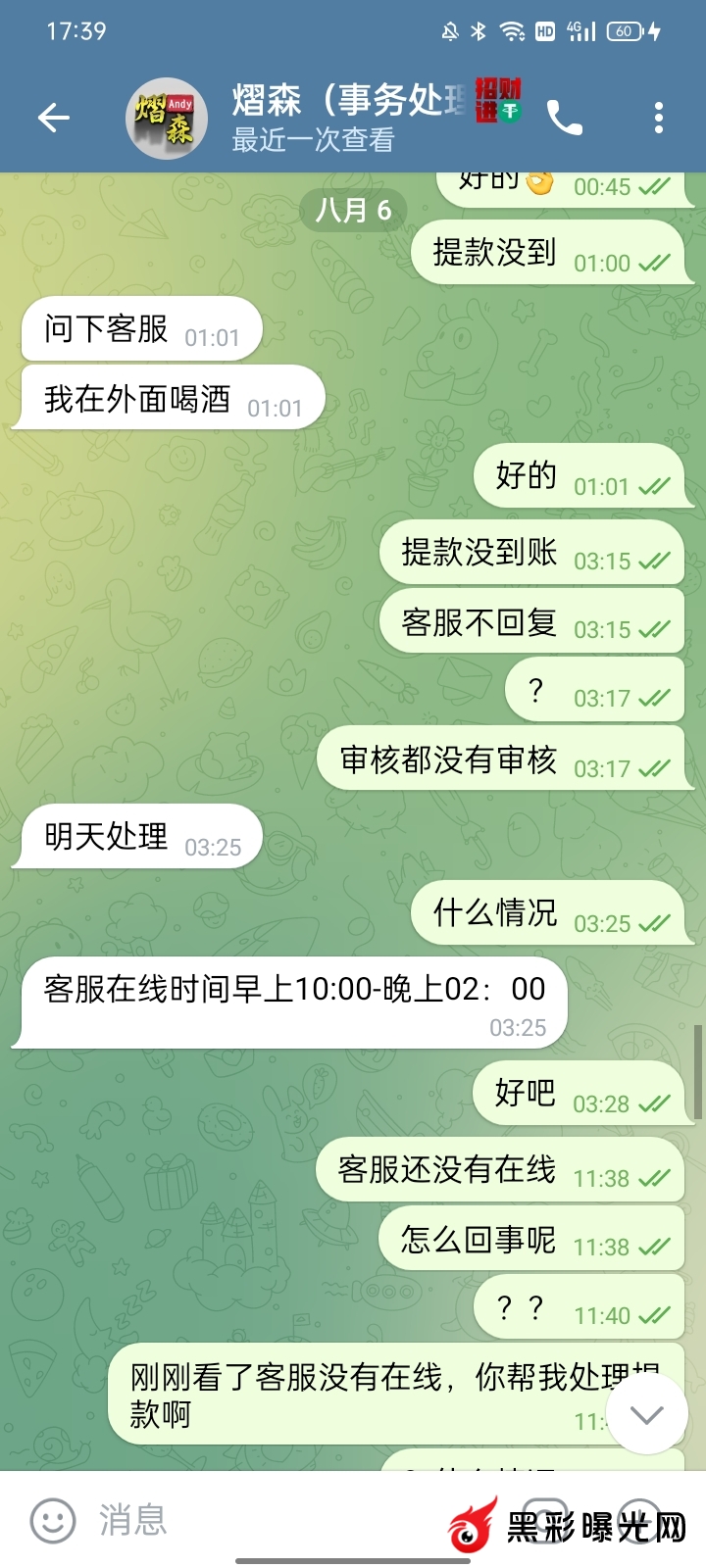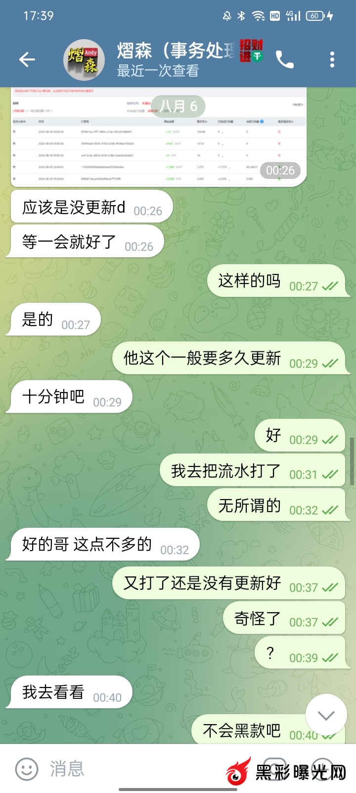 2024年8月6号我在亿博娱乐充值1000U打到1700U取款一直没有到账,那个招商之前天天给我献殷勤看着他前面很卖力的情况下,他的平台看着界面还不错我就想试试,没想到居然是杀猪盘我也是无语死。后面还想挽留什么说让我充值就能取款,真的当我是傻子吗搞笑,提醒飞机圈的玩家们最好选择自己信得过的平台娱乐,不熟的千万别信。
