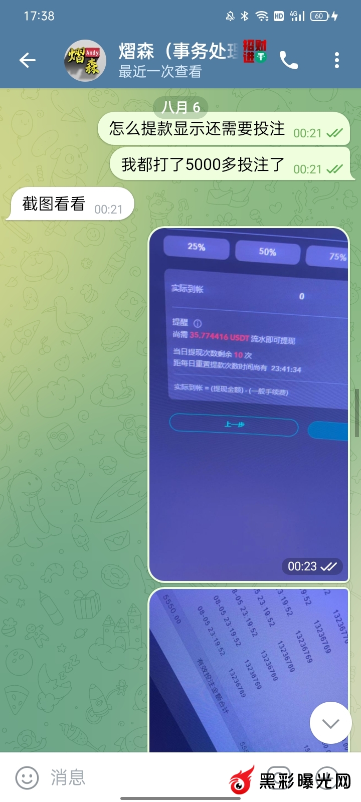 下面是我跟杀猪盘聊天记录,他昨天把记录删了我提前保留了。