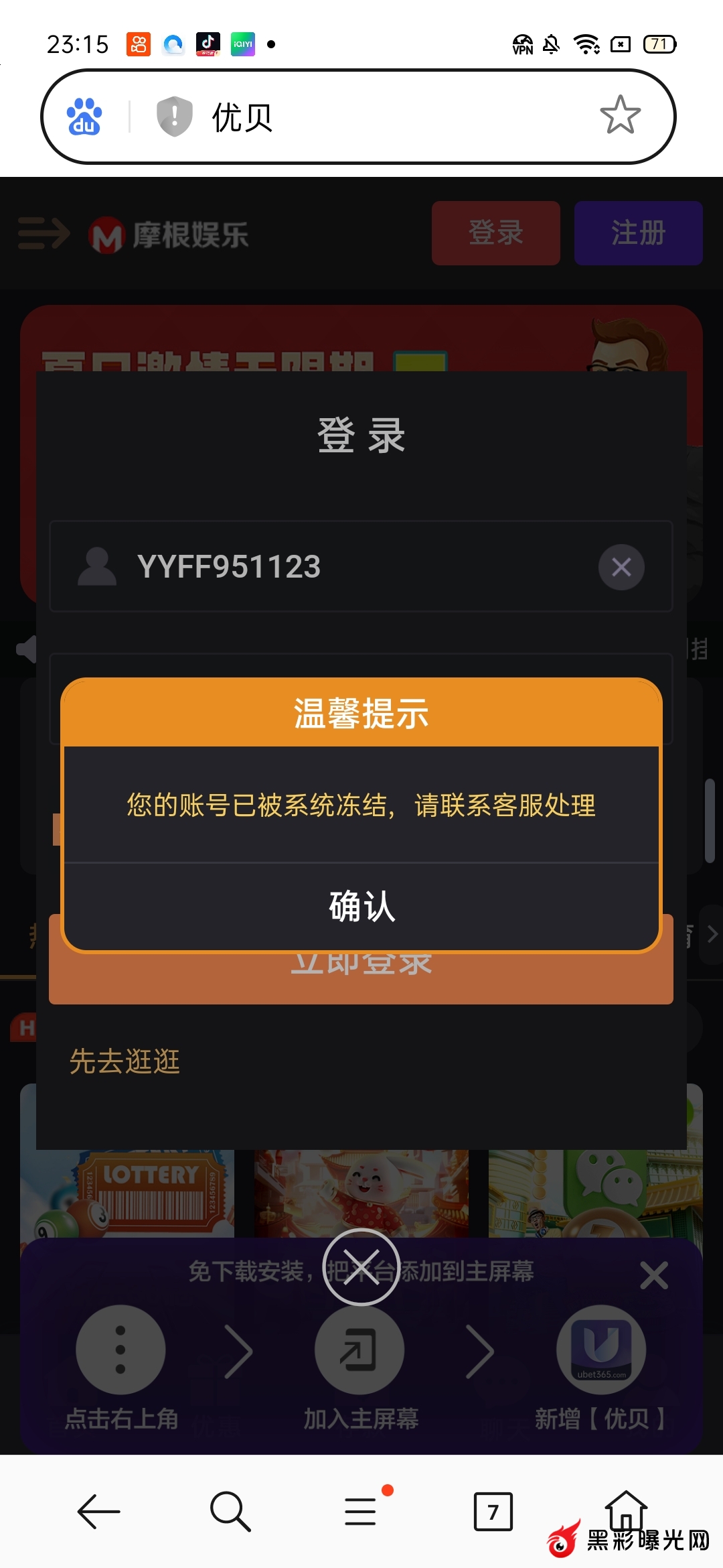 通过别人介绍本人去了新宝集团优贝娱乐进行游戏,充值了1000。打了香港六合彩特码几码,中奖后提现等了10个小时不到账,到了晚上发现平台冻结账号,找了客服客服让我提交飞机号,会有专员联系我,就是图片上的工作人员联系我了,以为来给我处理事情的,没有想到只给我回复了一句彩票异常玩法,然后不给我处理事情,也不理人,把我拉黑了。劝兄弟们远离垃圾新宝集团平台,远离黑钱平台,只要赢钱想办法黑你,只能充值不能提现,平台无缘无故黑钱,没有任何证据。我希望平台的高层出来给我协商好好处理一下。本人飞机号@YYFF951123 大家认清出黑钱新宝集团,以前的时代集团也是被新宝集团收购了。远离时代集团远离新宝集团。快年底了。大家选择一个好的品牌。好的平台。