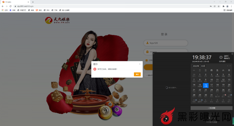 天九娱乐黑我38W,本金10W,账户被冻结,客服线被拉黑。